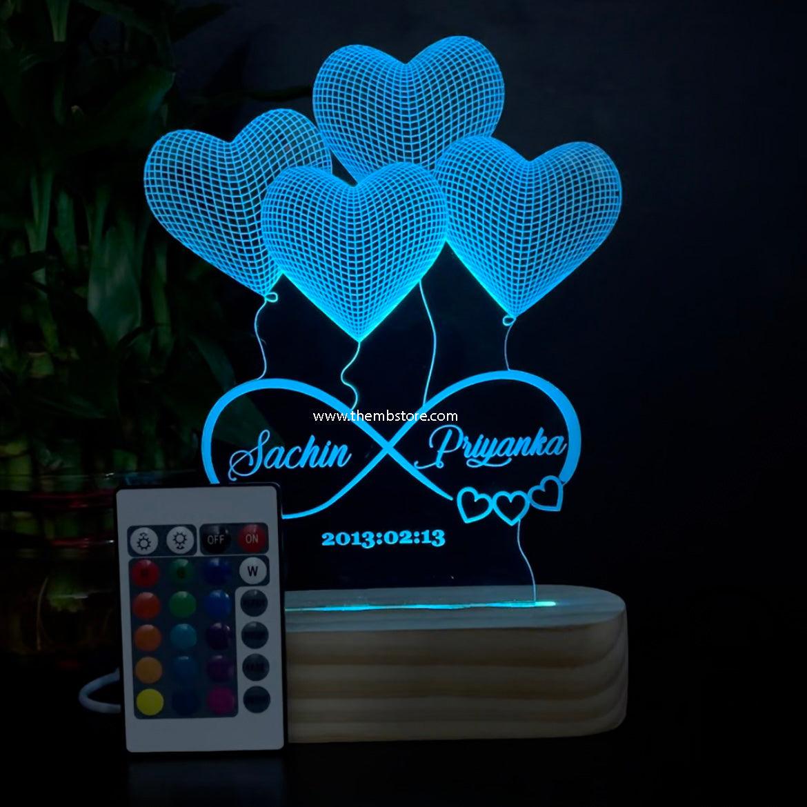 Customizable 4 Heart Illusion Lamp (Round Base)